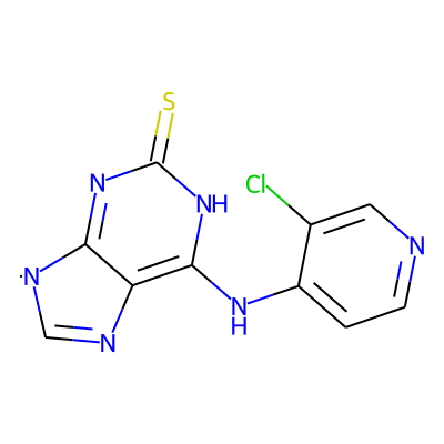 S=c1nc2c(c(Nc3ccncc3Cl)[nH]1)N=C[N]2| HBA: | 6 | RingCount: | 3 |