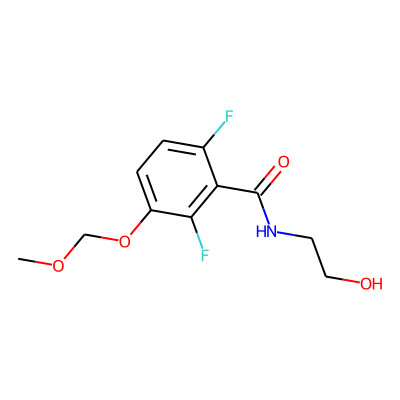 COCOc1ccc(F)c(C(=O)NCCO)c1F| HBA: | 5 | RingCount: | 1 |