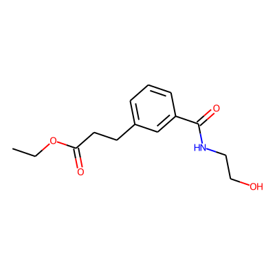 CCOC(=O)CCc1cccc(C(=O)NCCO)c1| HBA: | 5 | RingCount: | 1 |