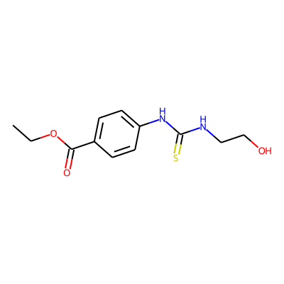 CCOC(=O)c1ccc(NC(=S)NCCO)cc1| HBA: | 5 | RingCount: | 1 |