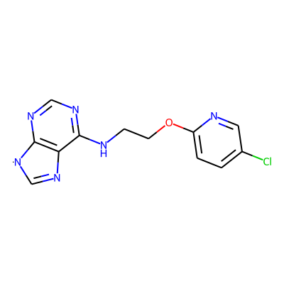 Clc1ccc(OCCNc2ncnc3c2N=C[N]3)nc1| HBA: | 7 | RingCount: | 3 |