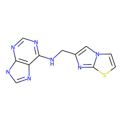C1=Nc2c(ncnc2NCc2cn3ccsc3n2)[N]1| HBA: | 7 | RingCount: | 4 |