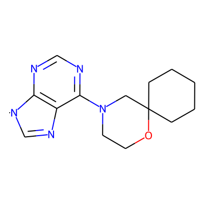 C1=Nc2c(ncnc2N2CCOC3(CCCCC3)C2)[N]1| HBA: | 6 | RingCount: | 4 |