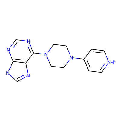 C1=Nc2c(ncnc2N2CCN(c3cc[nH+]cc3)CC2)[N]1| HBA: | 7 | RingCount: | 4 |