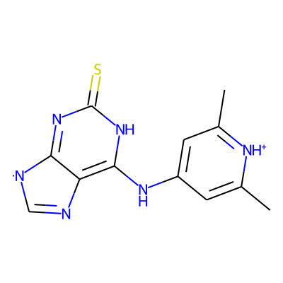 Cc1cc(Nc2[nH]c(=S)nc3c2N=C[N]3)cc(C)[nH+]1| HBA: | 6 | RingCount: | 3 |