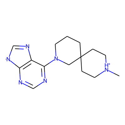 C[NH+]1CCC2(CCCN(c3ncnc4c3N=C[N]4)C2)CC1| HBA: | 6 | RingCount: | 4 |