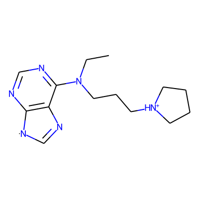 CCN(CCC[NH+]1CCCC1)c1ncnc2c1N=C[N]2| HBA: | 6 | RingCount: | 3 |