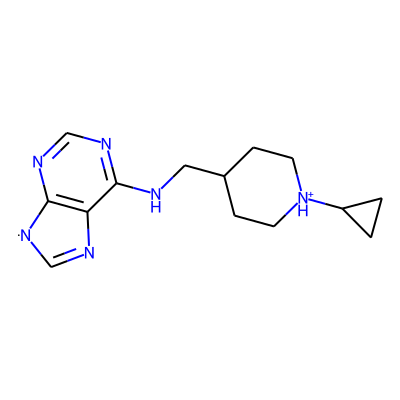 C1=Nc2c(ncnc2NCC2CC[NH+](C3CC3)CC2)[N]1| HBA: | 6 | RingCount: | 4 |