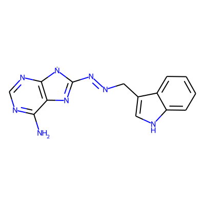 Nc1ncnc2c1N=C(N=NCc1c[nH]c3ccccc13)[N]2| HBA: | 8 | RingCount: | 4 |