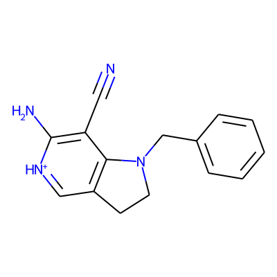 N#Cc1c(N)[nH+]cc2c1N(Cc1ccccc1)CC2| HBA: | 4 | RingCount: | 3 |