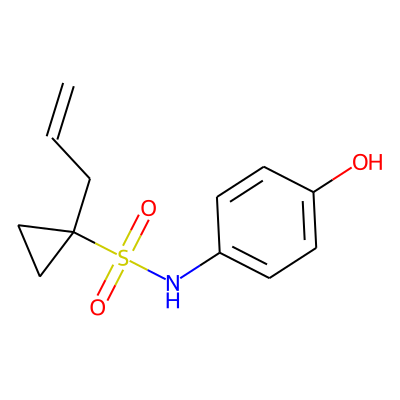 C=CCC1(S(=O)(=O)Nc2ccc(O)cc2)CC1| HBA: | 4 | RingCount: | 2 |
