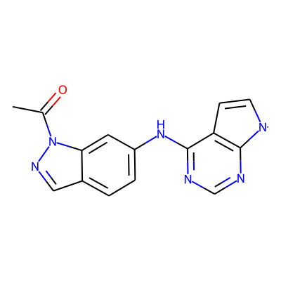 CC(=O)n1ncc2ccc(Nc3ncnc4c3C=C[N]4)cc21| HBA: | 7 | RingCount: | 4 |