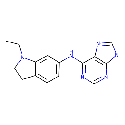 CCN1CCc2ccc(Nc3ncnc4c3N=C[N]4)cc21| HBA: | 6 | RingCount: | 4 |