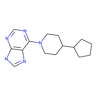 C1=Nc2c(ncnc2N2CCC(C3CCCC3)CC2)[N]1| HBA: | 5 | RingCount: | 4 |