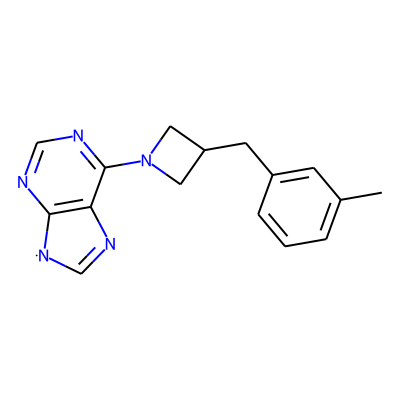 Cc1cccc(CC2CN(c3ncnc4c3N=C[N]4)C2)c1| HBA: | 5 | RingCount: | 4 |