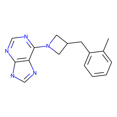 Cc1ccccc1CC1CN(c2ncnc3c2N=C[N]3)C1| HBA: | 5 | RingCount: | 4 |