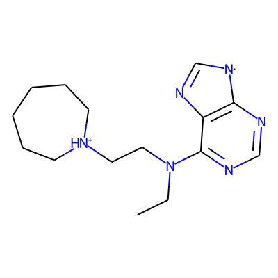 CCN(CC[NH+]1CCCCCC1)c1ncnc2c1N=C[N]2| HBA: | 6 | RingCount: | 3 |