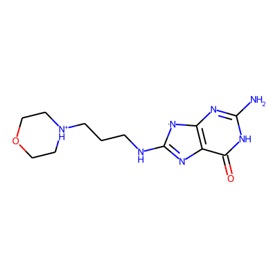 Nc1nc2c(c(=O)[nH]1)N=C(NCCC[NH+]1CCOCC1)[N]2| HBA: | 9 | RingCount: | 3 |