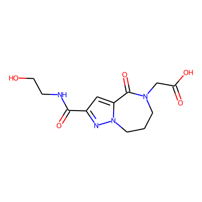O=C(O)CN1CCCn2nc(C(=O)NCCO)cc2C1=O| HBA: | 9 | RingCount: | 2 |