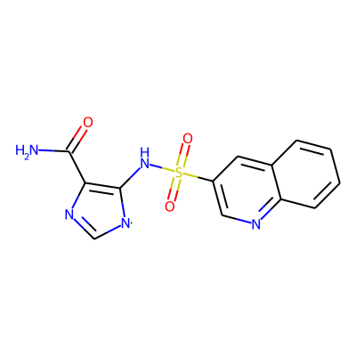NC(=O)C1=C(NS(=O)(=O)c2cnc3ccccc3c2)[N]C=N1| HBA: | 8 | RingCount: | 3 |