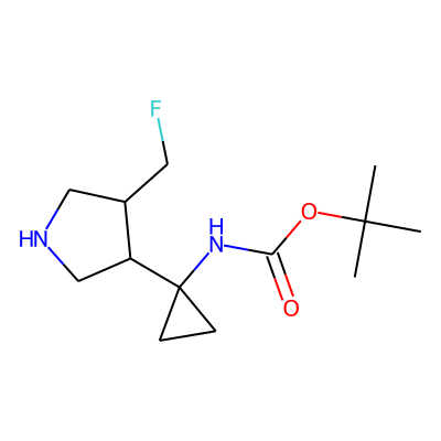 CC(C)(C)OC(=O)NC1(C2CNCC2CF)CC1| HBA: | 4 | RingCount: | 2 |