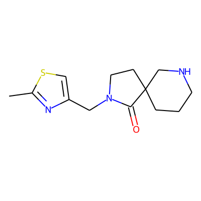 Cc1nc(CN2CCC3(CCCNC3)C2=O)cs1| HBA: | 4 | RingCount: | 3 |