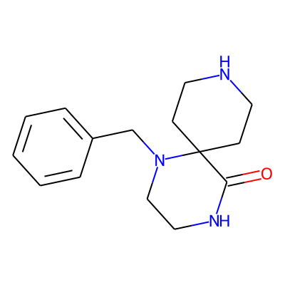 O=C1NCCN(Cc2ccccc2)C12CCNCC2| HBA: | 4 | RingCount: | 3 |