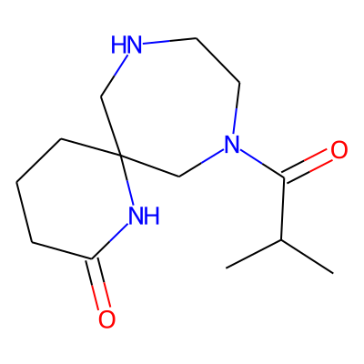 CC(C)C(=O)N1CCNCC2(CCCC(=O)N2)C1| HBA: | 5 | RingCount: | 2 |