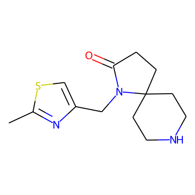 Cc1nc(CN2C(=O)CCC23CCNCC3)cs1| HBA: | 4 | RingCount: | 3 |