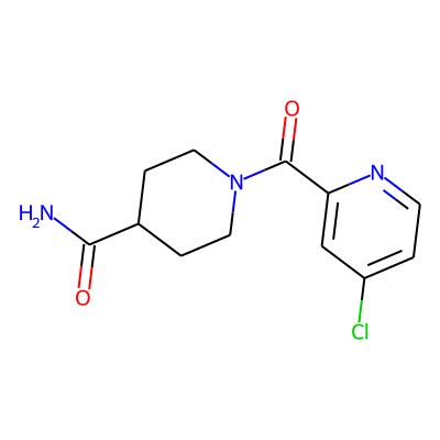 NC(=O)C1CCN(C(=O)c2cc(Cl)ccn2)CC1| HBA: | 5 | RingCount: | 2 |