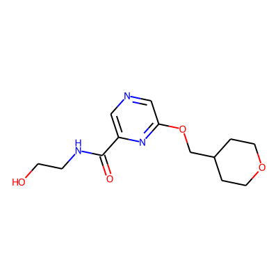 O=C(NCCO)c1cncc(OCC2CCOCC2)n1| HBA: | 7 | RingCount: | 2 |