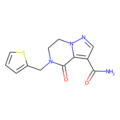 NC(=O)c1cnn2c1C(=O)N(Cc1cccs1)CC2| HBA: | 6 | RingCount: | 3 |