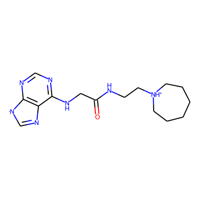 O=C(CNc1ncnc2c1ncn2[C@@H]1O[C@H](CO)[C@@H](O)[C@H]1O)NCC[NH+]1CCCCCC1Aglycone: