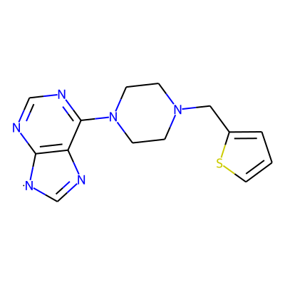 C1=Nc2c(ncnc2N2CCN(Cc3cccs3)CC2)[N]1| HBA: | 6 | RingCount: | 4 |