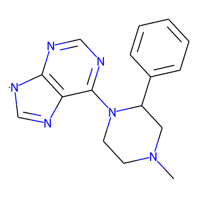 CN1CCN(c2ncnc3c2N=C[N]3)C(c2ccccc2)C1| HBA: | 6 | RingCount: | 4 |