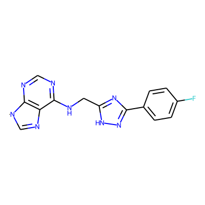 Fc1ccc(-c2n[nH]c(CNc3ncnc4c3N=C[N]4)n2)cc1| HBA: | 8 | RingCount: | 4 |