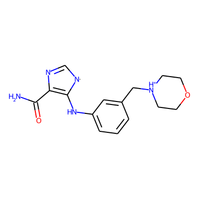 NC(=O)C1=C(Nc2cccc(C[NH+]3CCOCC3)c2)[N]C=N1| HBA: | 7 | RingCount: | 3 |