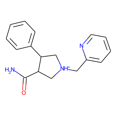 NC(=O)C1C[NH+](Cc2ccccn2)CC1c1ccccc1| HBA: | 4 | RingCount: | 3 |