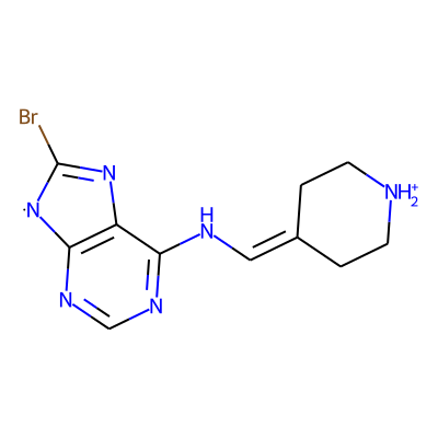 BrC1=Nc2c(ncnc2NC=C2CC[NH2+]CC2)[N]1Sugarmoiety: