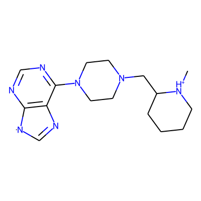C[NH+]1CCCCC1CN1CCN(c2ncnc3c2N=C[N]3)CC1| HBA: | 7 | RingCount: | 4 |