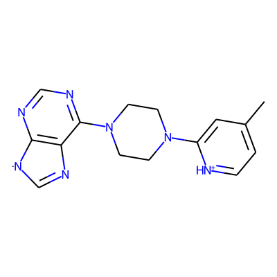 Cc1cc[nH+]c(N2CCN(c3ncnc4c3N=C[N]4)CC2)c1| HBA: | 7 | RingCount: | 4 |
