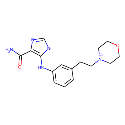 NC(=O)C1=C(Nc2cccc(CC[NH+]3CCOCC3)c2)[N]C=N1| HBA: | 7 | RingCount: | 3 |