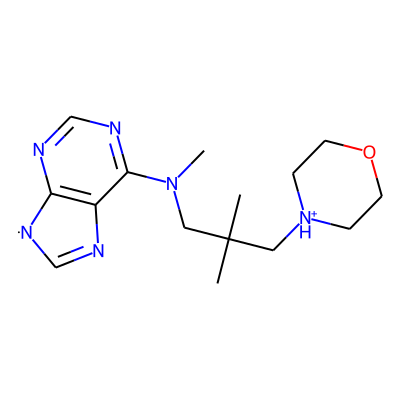 CN(CC(C)(C)C[NH+]1CCOCC1)c1ncnc2c1N=C[N]2| HBA: | 7 | RingCount: | 3 |