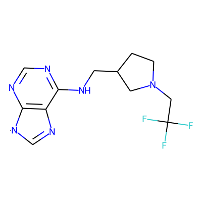 FC(F)(F)CN1CCC(CNc2ncnc3c2N=C[N]3)C1| HBA: | 6 | RingCount: | 3 |