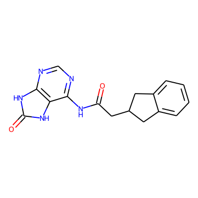 O=C(CC1Cc2ccccc2C1)Nc1ncnc2[nH]c(=O)[nH]c12| HBA: | 7 | RingCount: | 4 |