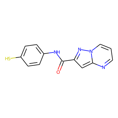 O=C(Nc1ccc(S)cc1)c1cc2ncccn2n1| HBA: | 5 | RingCount: | 3 |