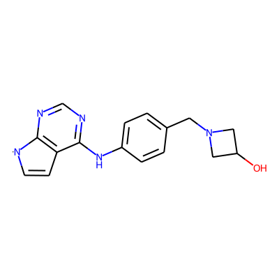 OC1CN(Cc2ccc(Nc3ncnc4c3C=C[N]4)cc2)C1| HBA: | 6 | RingCount: | 4 |