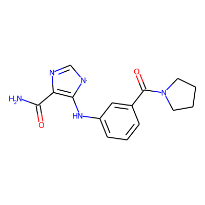 NC(=O)C1=C(Nc2cccc(C(=O)N3CCCC3)c2)[N]C=N1| HBA: | 7 | RingCount: | 3 |