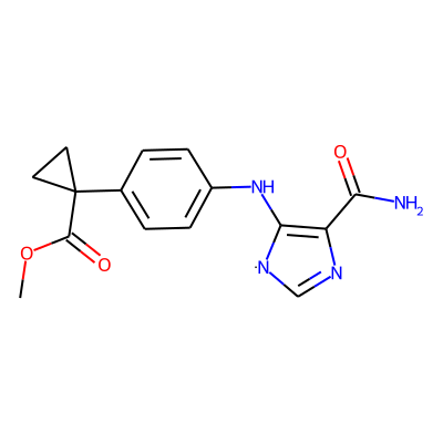 COC(=O)C1(c2ccc(NC3=C(C(N)=O)N=C[N]3)cc2)CC1| HBA: | 7 | RingCount: | 3 |
