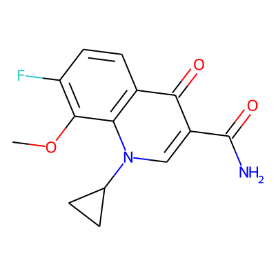 COc1c(F)ccc2c(=O)c(C(N)=O)cn(C3CC3)c12| HBA: | 5 | RingCount: | 3 |